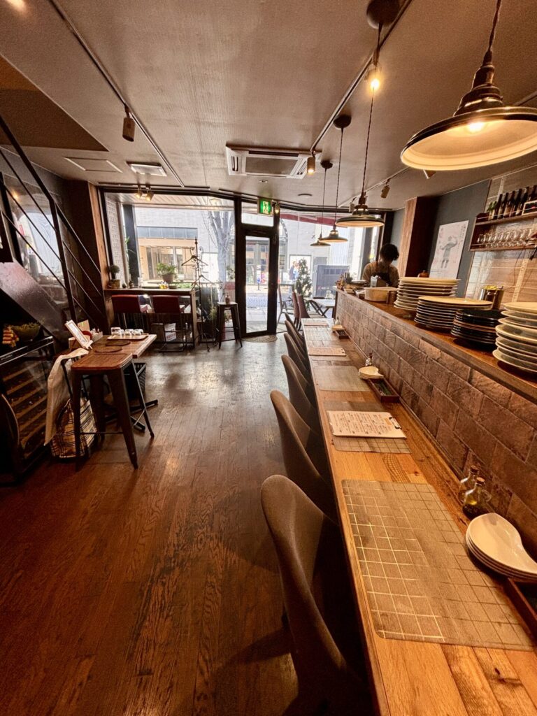 店内は1階と2階に分かれており、1階にはカウンター席が7席ほどと、テーブル席が1席、窓側の2人掛け席が1席、テラス席も1席あります☆