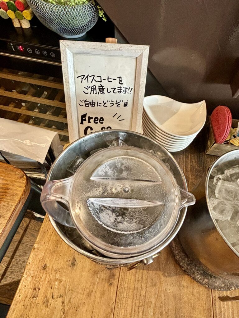 1階のレジ横あたりに設置されているアイスコーヒーは、セルフでおかわり自由という形になっています。