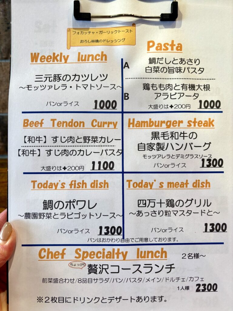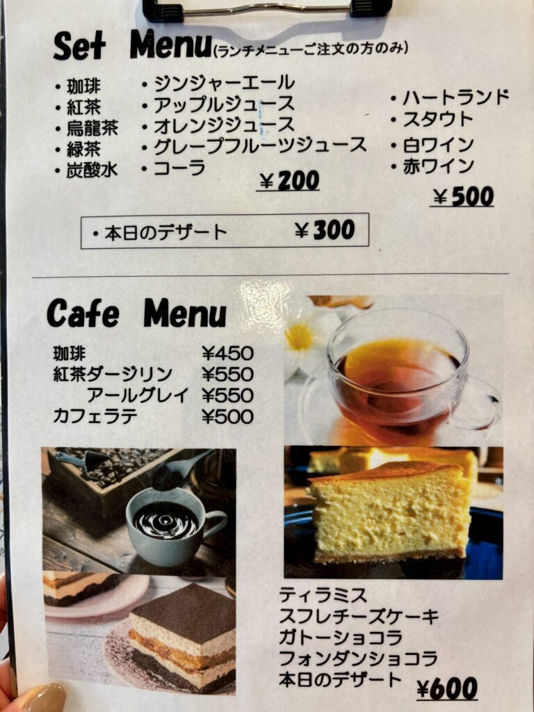 メニューは以下のとおりです。メニュー、値段は変更になっている可能性がありますので、ご了承ください。